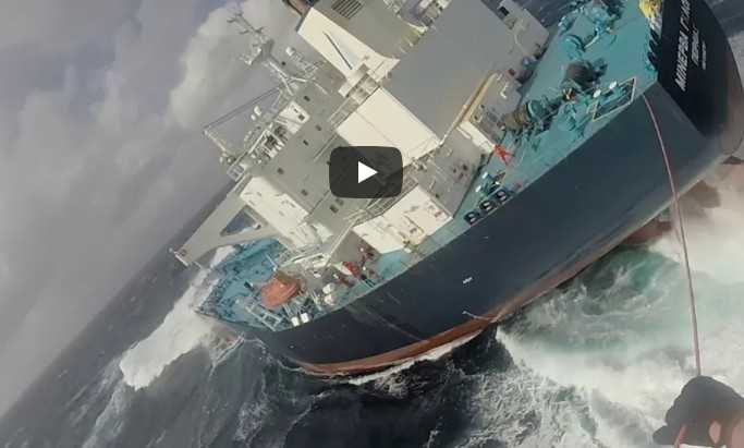 Γιγαντιαία κύματα και θυελλώδεις άνεμοι έθεσαν σε κίνδυνο της ζωή του πλοιάρχου αλλά και των πιλότων που συμμετείχαν στην επιχείρηση διάσωσης.