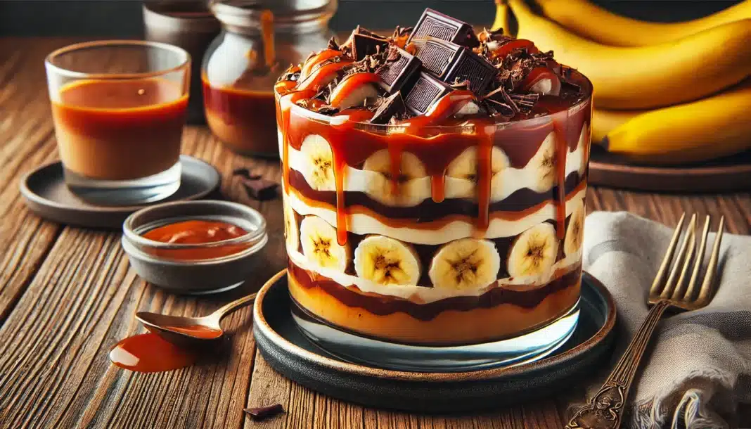 Αυτό το γλυκό ψυγείου είναι ιδανικό για να εντυπωσιάσετε τους καλεσμένους σας ή για να απολαύσετε μια ξεχωριστή στιγμή με την οικογένειά σας. Η καραμέλα, η σοκολάτα και οι μπανάνες συνδυάζονται αρμονικά για να δημιουργήσουν ένα ακαταμάχητο επιδόρπιο. Είναι εύκολο στην παρασκευή και δεν απαιτεί ψήσιμο, κάνοντάς το ιδανικό για τις ζεστές μέρες.