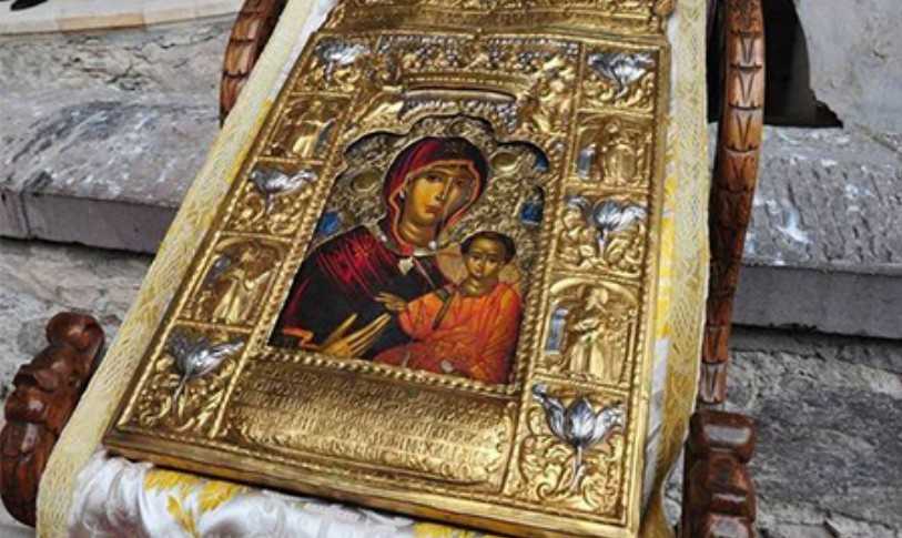 Ευαγγελίστρια, η Παναμώμητος, άβυσσος της ευσπλαχνίας, η Διαζώσουσα, η Δαιμονοκαθαιρέτης, πλούτος ευεργεσίας, Πανυπερούσιον φως, κεραυνός δαιμόνων, και ευφροσύνη, Βάτε φλογοφόρε, σκήπτρο εξουσίας, Ζωήρητη μυρσίνη, Μεσίτρια ευλογημένη, Θείο εγκαλλώπισμα αϊδίου Φωτός, Εγγυήτρια ανέλαβε της ψυχής μας ελπίς και ιατρός, επάκουσε την δέηση ημών της Εκκλησίας Δομήτωρ, θεραπεία των αμαρτωλών, Παναγία Συ η Αντιλήπτωρ, βοήθησον τον/την δούλον/ην σου (τάδε).