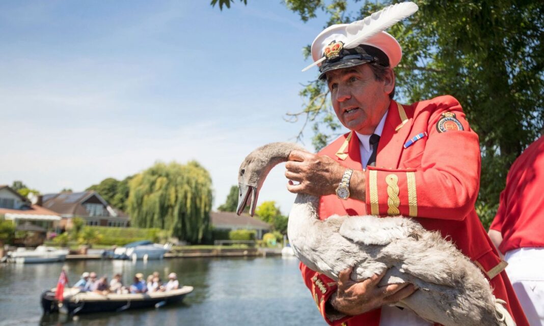 Η παραδοσιακή καταμέτρηση των κύκνων στον Τάμεση είναι ένα ετήσιο καλοκαιρινό θέαμα, με ομάδες κωπηλατών να διασχίζουν τον ποταμό υπό την καθοδήγηση του Ντέιβιντ Μπάρμπερ, ο οποίος φέρει ένα φτερό κύκνου στο καπέλο του.