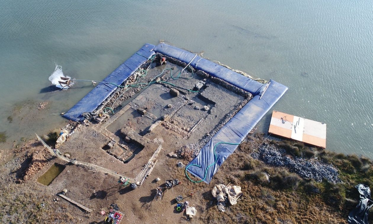 Η διερεύνηση του καταβυθισμένου τμήματος του κτηρίου, προσαρμοσμένη σε κάναβο με τετράγωνα 4 x4 μ., πραγματοποιήθηκε σε δύσκολο βουρκώδες περιβάλλον με την εφαρμογή, και πάλι, ‘αμφίβιας’ ανασκαφικής τεχνικής, η οποία συνδυάζει μεθόδους και πρακτικές της χερσαίας και της υποβρύχιας Αρχαιολογίας και επιτεύχθηκε με την τοποθέτηση ειδικού εύκαμπτου υδατοφράκτη και την χρησιμοποίηση 3 υδραντλιών για την καθημερινή απάντληση των υδάτων και την αφαίρεση των ιζημάτων σε θαλάσσιο πεδίο συνολικής εκτάσεως 190 τ.μ.