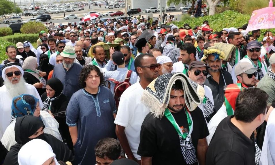 Το μαύρο, το άσπρο, το πράσινο και το κόκκινο –τα χρώματα της παλαιστινιακής σημαίας– ήταν εμφανή στη μεγάλη συγκέντρωση ανδρών, γυναικών και παιδιών, ενώ η οργή για τις ενέργειες του Ισραήλ ήταν έκδηλες. «Κοιτάξτε πώς δολοφονήθηκε ένας Παλαιστίνιος ηγέτης σε μια ξένη χώρα, υπάρχει κάποιος διεθνής νόμος που θα κάνει τους Ισραηλινούς να λογοδοτήσουν;»