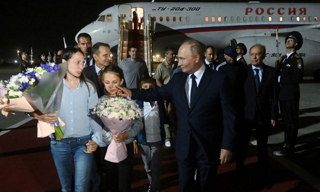 Ο Κρασίκοφ είχε καταδικαστεί από γερμανικό δικαστήριο για τη δολοφονία ενός πρώην Τσετσένου μαχητή σε πάρκο του Βερολίνου το 2019 και ήταν ανάμεσα σε αυτούς που υποδέχτηκε ο Βλαντιμίρ Πούτιν.