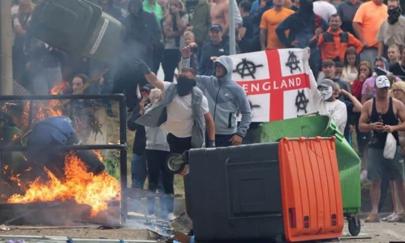 Οι ταραχές συνεχίστηκαν με αμείωτη ένταση σε κωμοπόλεις σε όλη την Αγγλία την χθες (4/8) με την αστυνομία να καταδικάζει ένα «ιλιγγιώδες» επίπεδο βίας. Η Ντάουνινγκ Στριτ αναμένεται να πραγματοποιήσει συνάντηση έκτακτης ανάγκης της COBRA σήμερα Δευτέρα, μετά την προσπάθειά τους να εισβάλουν σε ξενοδοχεία που φιλοξενούν αιτούντες άσυλο κατά την έκτη ημέρα των επεισοδίων.