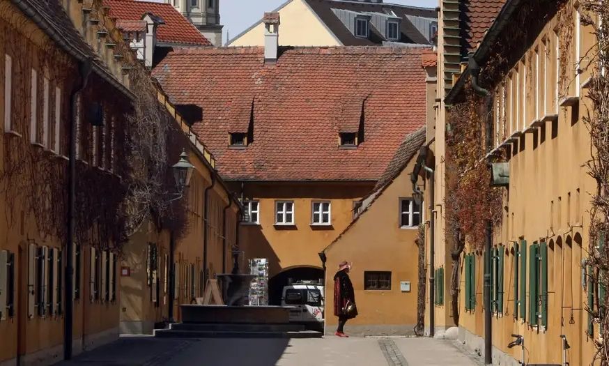 Ο κοινωνικός οικισμός Fuggerei ιδρύθηκε το 1516 από τον Γιακόμπ Φούγκερ τον Νεότερο (γνωστός και ως Γιακόμπ Φούγκερ ο Πλούσιος), ως μια καινοτόμα λύση στο πρόβλημα στέγασης των φτωχών πολιτών της περιοχής.