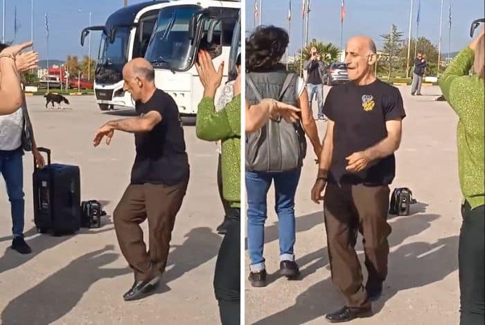 Μας αρέσει να βλέπουμε τέτοια βίντεο, δεν το κρύψαμε ποτέ. Ελληνικός ήλιος, χαρούμενοι άνθρωποι και ο μοναδικός χορός του μεγαλούτσικου κυρίου -που μάλλον είναι ο οδηγός του λεωφορείου- να δίνει ρεσιτάλ ρυθμού υπό τον ήχο της Φουρέιρα και το άσμα “Μαντάμ”!