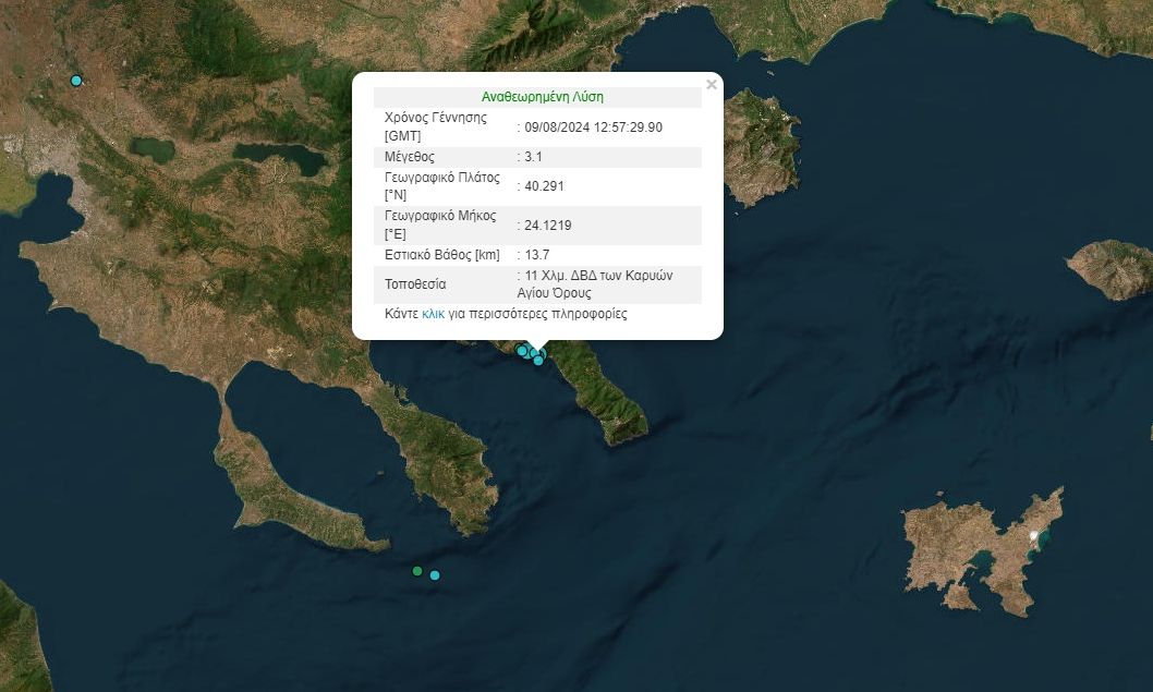 Ο σεισμός έγινε στις 15:57 το μεσημέρι της Παρασκευής (09/08) και είχε ένταση 3,1 Ρίχτερ και βάθος 3,7 χιλιομέτρων.