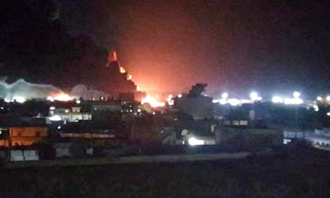 The explosion was apparently caused by a drone targeting the base, with a fire breaking out and smoke rising from inside it. pic.twitter.com/l3bS6Rriq1