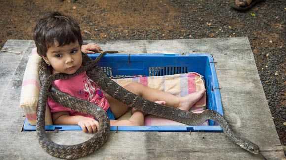 Η εγγονή του Prakash Amte είναι εξοικιωμένη όπως και τα άλλα τρία του εγγόνια με τα ζώα του καταφυγίου