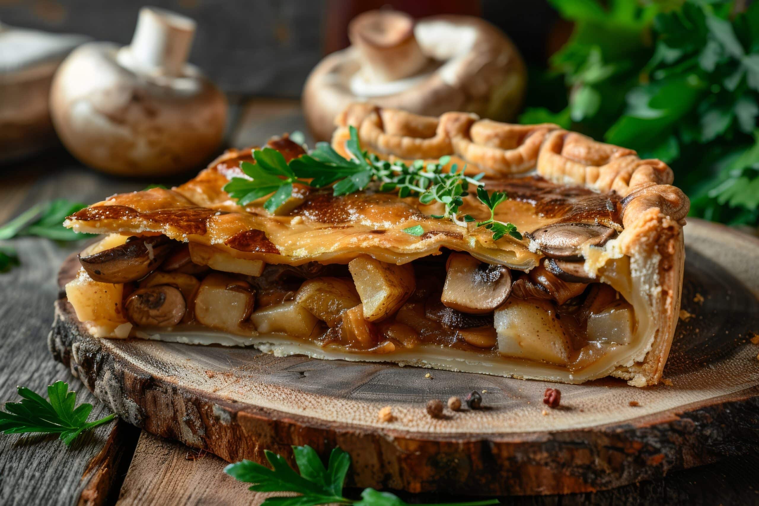 Μπορείτε να φτιάξετε αυτό το πιάτο με σπιτική ζύμη πίτας ή να επιταχύνετε τα πράγματα με σφολιάτα που αγοράσατε από το κατάστημα. Ενώ οι αλμυρές πίτες είναι τυπικό φαγητό σε παμπ, μπορείτε επίσης να σερβίρετε μανιταρόπιτα ως μέρος ενός brunch.