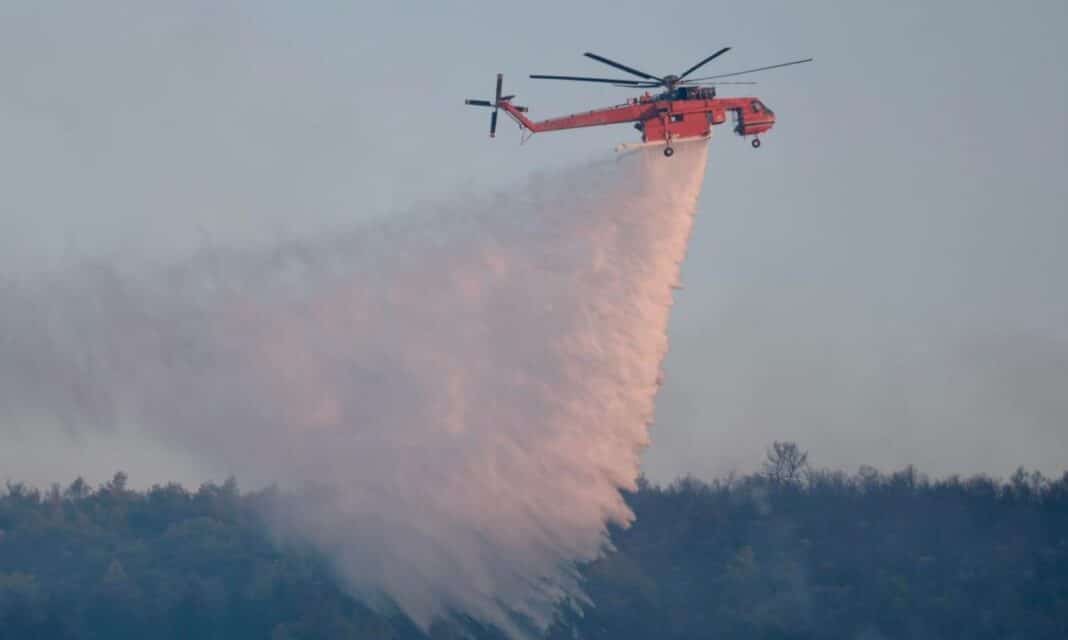 Η φωτιά καίει σε δασική έκταση του δήμου Θέρμου