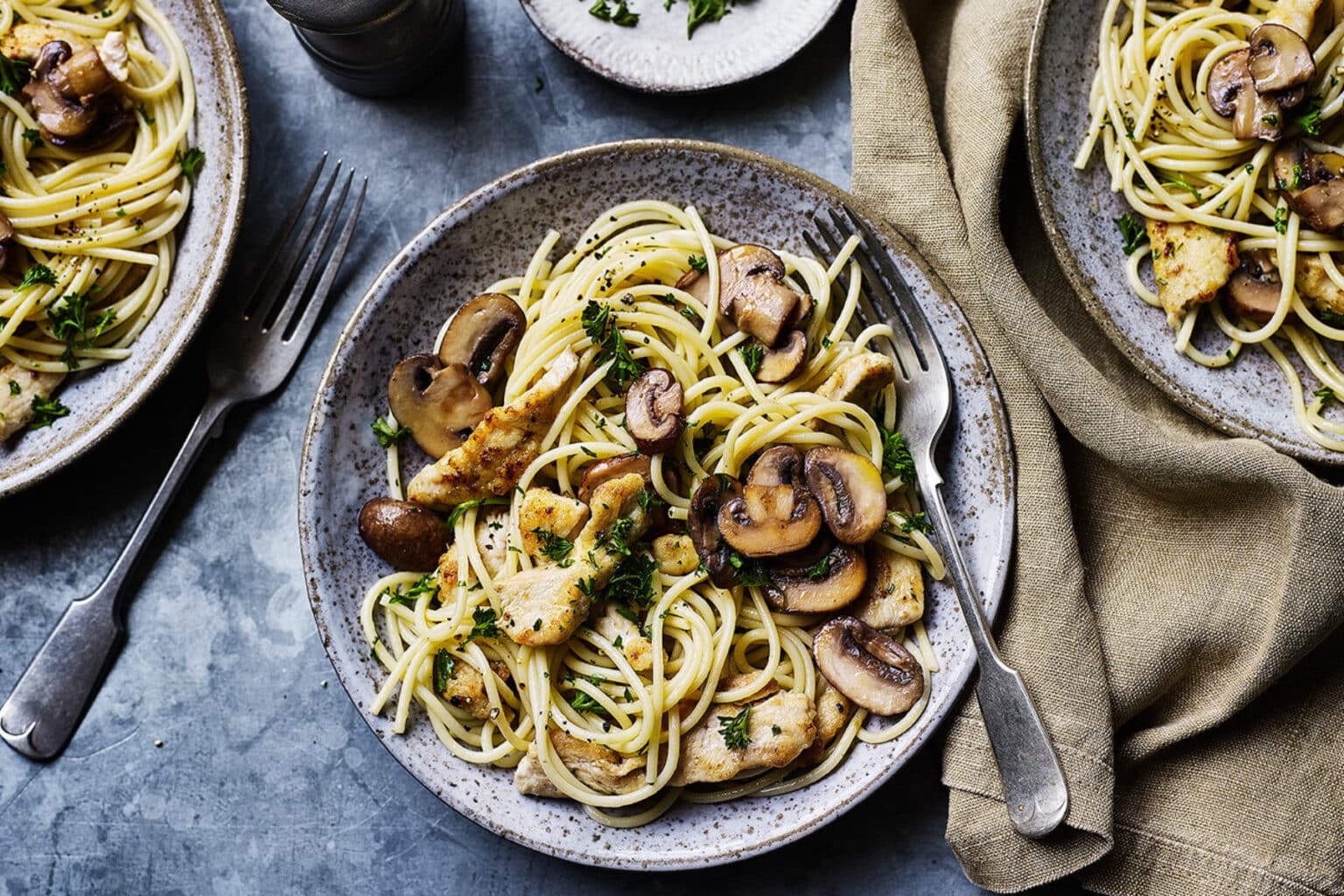 Ζυμαρικά με κοτόπουλο, μανιτάρια και παρμεζάνα