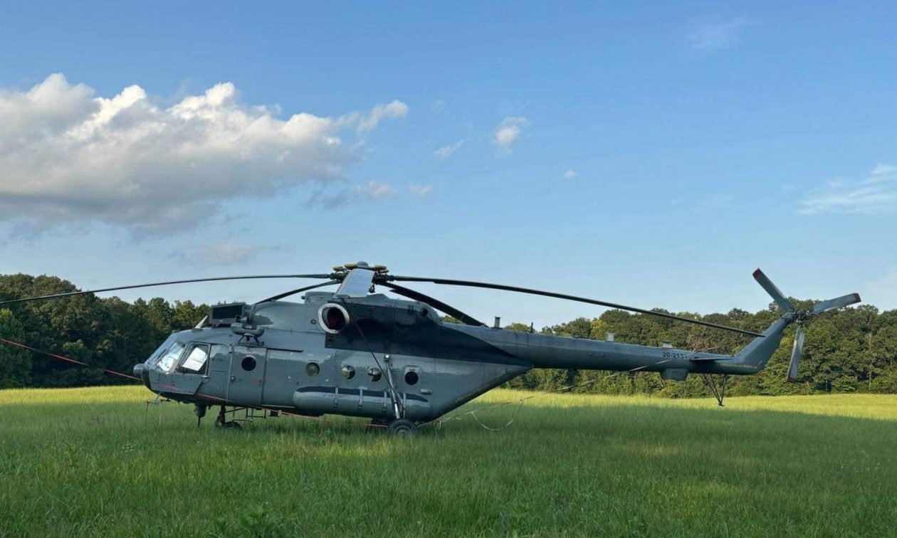 Το Mi-171E1, μια παραλλαγή του στρατιωτικού μεταγωγικού και κανονιοφόρου ελικοπτέρου σοβιετικής σχεδίασης, προσγειώθηκε σε ένα χωράφι