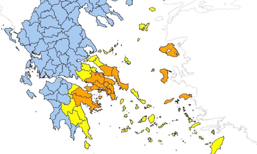 Πολύ υψηλός κίνδυνος πυρκαγιάς (κατηγορία κινδύνου 4) για τις εξής περιοχές: