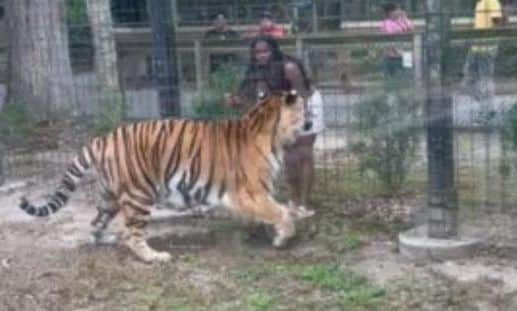 Στο βίντεο, η γυναίκα φαίνεται να προσπαθεί να δελεάσει μια τίγρη της Βεγγάλης στον ζωολογικό κήπο Κόχανζικ στο Μπρίτζτον, περνώντας το χέρι της μέσα από ένα συρματόπλεγμα.
