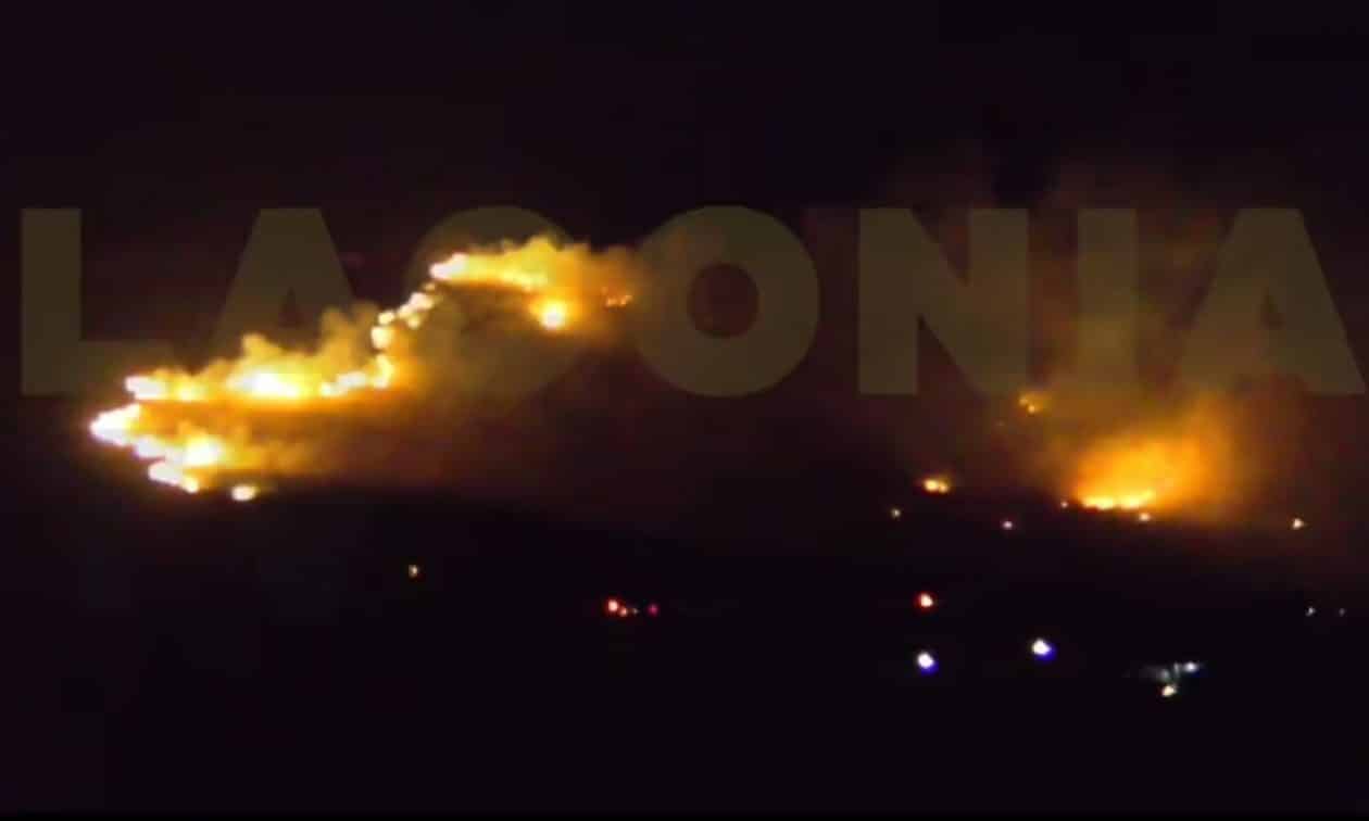 Πλέον, μάχη με τις φλόγες δίνουν μοναχά επίγειες δυνάμεις. Στο ακόλουθο βίντεο, του Laconiatv, φαίνεται η έκταση που έχει το μέτωπο της φωτιάς.