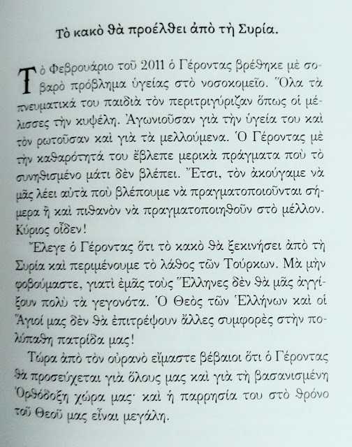 Γέροντας Γαβριήλ Αγιοβαρναβίτης: «Το κακό θα ξεκινήσει από τη Συρία και περιμένουμε το λάθος των Τούρκων…».
