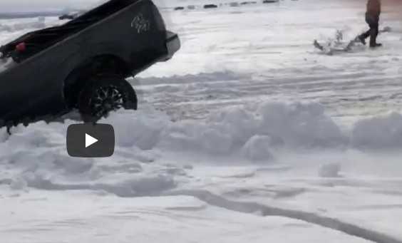 Πάρκαρε το φορτηγό του σε παγωμένη λίμνη με αποτέλεσμα να υποχωρήσει ο πάγος και να ξεκινήσει να βυθίζεται.