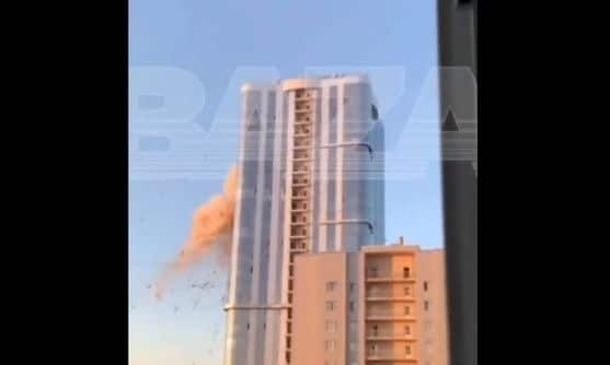 Σύμφωνα, μάλιστα, με την ενημέρωση που παρείχε η διοίκηση της πόλης, από το συγκεκριμένο χτύπημα στο κτίριο 40 ορόφων, καταστράφηκαν δύο διαμερίσματα και τραυματίστηκαν τέσσερις άνθρωποι, με τον έναν εκ των οποίων, μια γυναίκα αγνώστων λοιπών στοιχείων, να νοσηλεύεται σε κρίσιμη κατάσταση.
