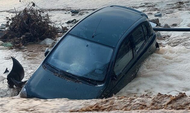 Οι δρόμοι μετατράπηκαν σε ποτάμια με αποτέλεσμα να παρασυρθούν 3 αυτοκίνητα ενώ πλημμύρισε και η μισή παραλία της περιοχής.