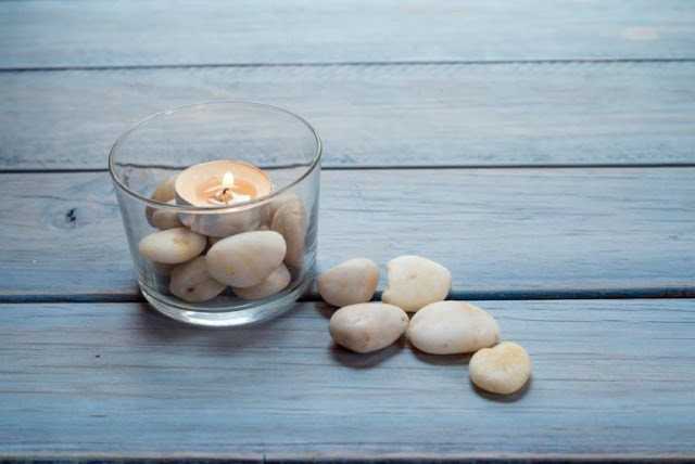 Τα κεριά είναι χρήσιμα για να κάνουν ρομαντική ατμόσφαιρα, χειμώνα καλοκαίρι. Και πώς θα σου φαινόταν, αν έφτιαχνες τα δικά σου κηροπήγια για τον κήπο, εύκολα και οικονομικά; Για τη διακόσμηση κήπου με βότσαλα και κεριά θα χρειαστείς ένα ποτήρι, ή ρηχό βάζο, μερικά μικρά βότσαλα και κεράκια ρεσό. Μέσα στο ποτήρι, βάλε μια βάση από βότσαλα και στήριξε σε αυτά ένα κεράκι, αρωματικό, ή όχι. Είναι καλύτερα, αν το ποτήρι δεν είναι ψηλό, γιατί έτσι διαχειρίζεσαι πιο εύκολα το εσωτερικό του με τα χέρια σου. Τόσο απλά μπορείς να έχεις τα δικά σου πρωτότυπα κηροπήγια κήπου για να κάνεις νυχτερινή ατμόσφαιρα.
