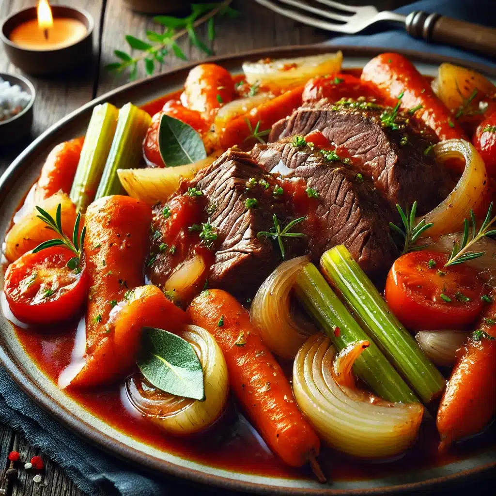 Ψητό κρέας στην κατσαρόλα με λαχανικά