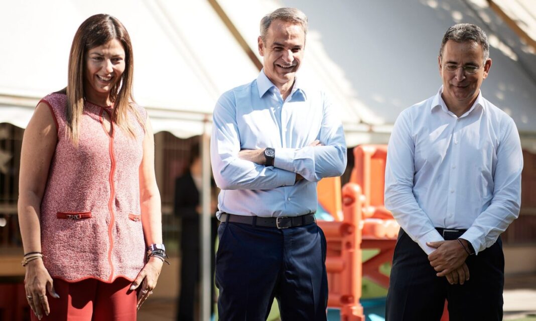 Ο πρωθυπουργός, συνοδευόμενος από την Υπουργό Κοινωνικής Συνοχής και Οικογένειας Σοφία Ζαχαράκη, ξεναγήθηκε στους χώρους του βρεφονηπιακού σταθμού και είχε την ευκαιρία να συνομιλήσει με τα παιδιά και τους εργαζόμενους του σταθμού.
