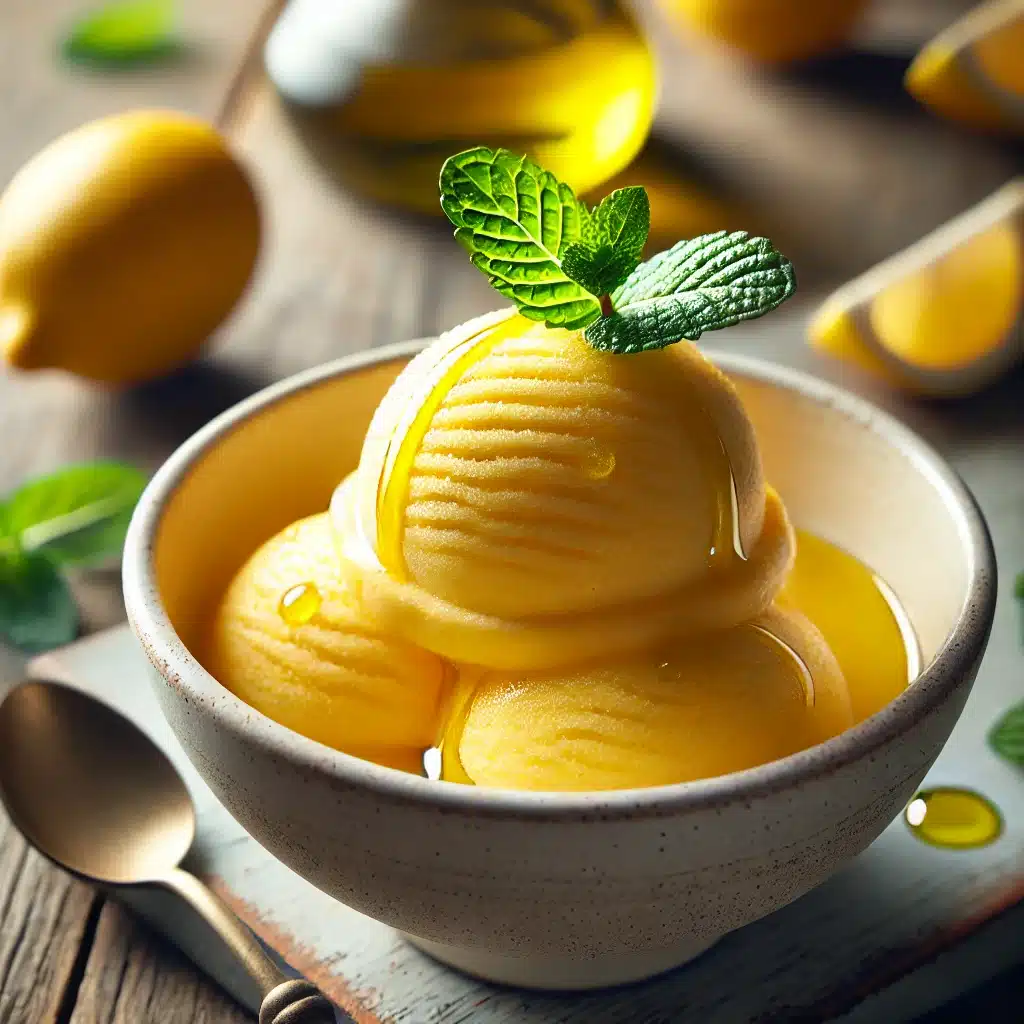 Σορμπέ λεμόνι με λάδι ελιάς