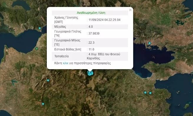 Ο σεισμός είχε μέγεθος 4 βαθμών της κλίμακας Ρίχτερ και είχε επίκεντρο 4 χιλιόμετρα βορειοδυτικά του Φενεού Κορινθίας