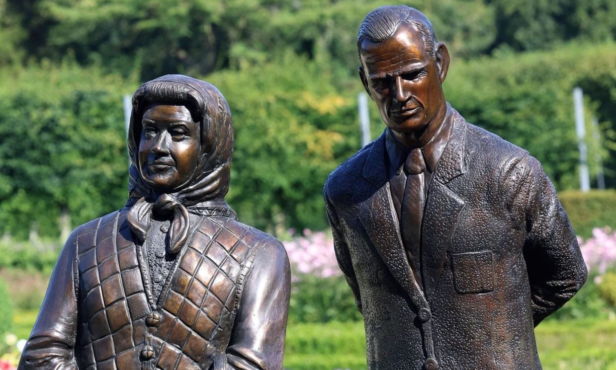 Το άγαλμα της Βασίλισσας τοποθετήθηκε στους Κήπους του Κάστρου Άντριμ την περασμένη εβδομάδα και στέκεται δίπλα στον Πρίγκιπα Φίλιππο.