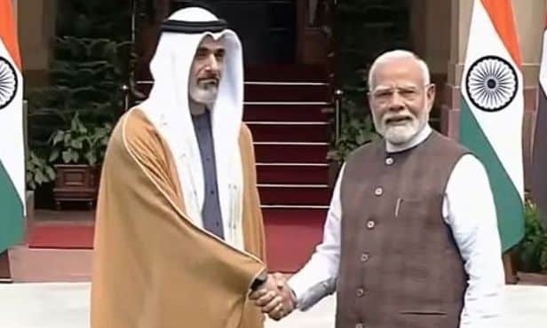 Κατά τη διάρκεια της επίσημης επίσκεψης του σεΐχη Khalid bin Mohamed bin Zayed Al Nahyan, διαδόχου του Άμπου Ντάμπι, η Ινδία και τα Ηνωμένα Αραβικά Εμιράτα υπέγραψαν τη Δευτέρα πολλά σημαντικά Μνημόνια Συνεννόησης, ανοίγοντας τον τρόπο για συνεργασία μεταξύ των δύο εθνών σε τομείς όπως η πυρηνική ενέργεια και το πετρέλαιο.
