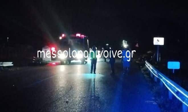 Όπως αναφέρει το messolonghivoice.gr, ΙΧ επιβατικό πέρασε κάθετα την επαρχιακή οδό. Όπως αναφέρουν οι πρώτες πληροφορίες, πιθανόν μηχανάκι χωρίς φώτα συγκρούστηκε με το αυτοκίνητο και στη συνέχεια οδηγός διερχόμενης μηχανής έπεσε πάνω στο πεσμένο μηχανάκι.