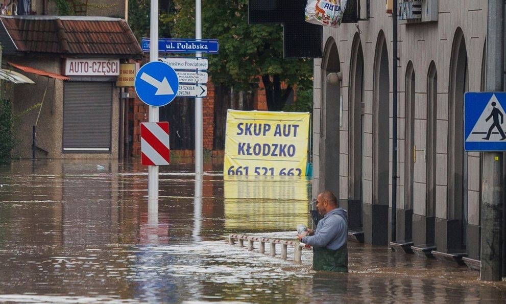 Στην Πολωνία, ένας άνθρωπος θεωρείται νεκρός από τις πλημμύρες στα νοτιοδυτικά, δήλωσε την Κυριακή ο πρωθυπουργός Ντόναλντ Τουσκ. Ο Τουσκ είπε ότι η κατάσταση ήταν «δραματική» γύρω από την πόλη Klodzko, με περίπου 25.000 κατοίκους, που βρίσκεται σε μια κοιλάδα στα βουνά Sudetes κοντά στα σύνορα με την Τσεχία. Σε λίγες περιπτώσεις χρησιμοποιήθηκαν ελικόπτερα για να σώσουν ανθρώπους από πλημμυρισμένες στέγες.
