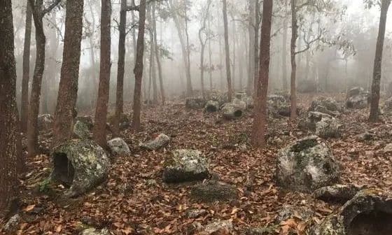 Τα τρομακτικά αγγεία – που ονομάζονται «βάζα των νεκρών» – είναι διάσπαρτα γύρω από δάση και πεδιάδες στο Λάος πιστεύεται ότι έχουν χρησιμοποιηθεί από απομακρυσμένες φυλές κατά τη διάρκεια τελετουργικών ταφών.
