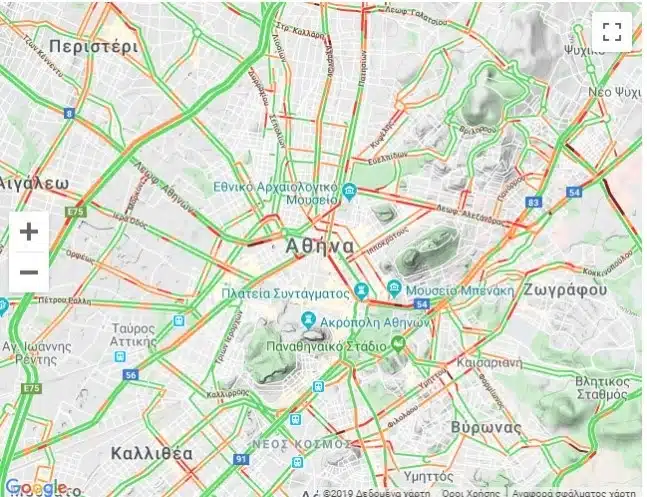 Η κυκλοφορία των οχημάτων διεξάγεται με πολύ χαμηλές ταχύτητες ενώ χαμηλές ταχύτητες υπάρχουν από νωρίς στην Αθηνών-Κορίνθου/Λ. Αθηνών στο ρεύμα της εξόδου, στην Αθηνών-Λαμίας (Αθηνών έως κόμβος Καλυφτάκη -έξοδος), στη λεωφόρο Κηφισίας, στη βασιλίσσης Σοφίας, στη Μεσογείων στο ρεύμα προς Αθήνα, στη λεωφόρο Καρέα, στην Ποσειδώνος.