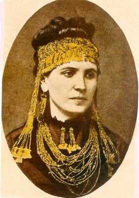 Η Σοφία Σλήμαν με «τα κοσμήματα της Ωραίας Ελένης» από τον «θησαυρό του Πριάμου 1874.