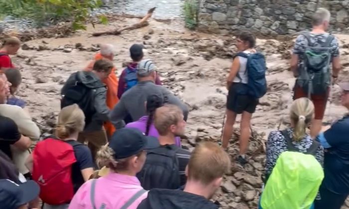 Ορμητικός χείμαρρος «σκάει» μπροστά στους τουρίστες