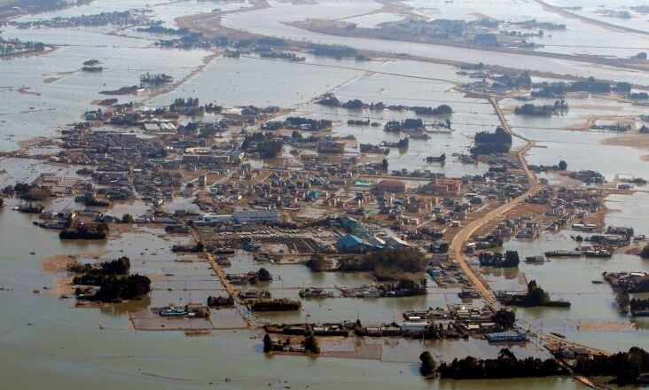 Σε πλάνα που μεταδόθηκαν από την ιαπωνική δημόσια τηλεόραση NHK, διακρίνεται δρόμος που έχει βυθιστεί κάτω από τα νερά στην Ουατζίμα.