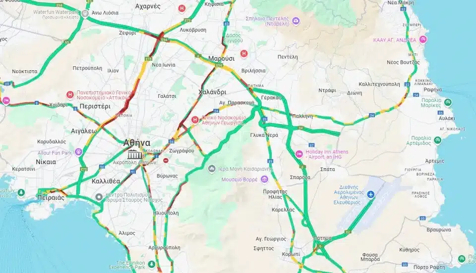 Παράλληλα, σοβαρά προβλήματα καταγράφονται και στην Αττική Οδό, με καθυστερήσεις 15-20 λεπτών σε αρκετά σημεία και στα δύο ρεύματα. Ιδιαίτερα στο ρεύμα προς αεροδρόμιο, οι καθυστερήσεις είναι έντονες μεταξύ Μεταμόρφωσης και Κηφισίας, ενώ καθυστερήσεις παρατηρούνται και στο ρεύμα προς Ελευσίνα.
