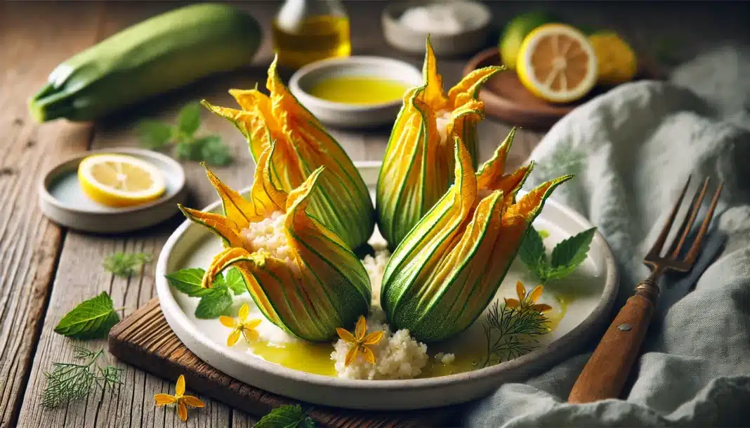 Οι κολοκυθοανθοί αποτελούν ένα από τα πιο εκλεκτά υλικά της ελληνικής κουζίνας. Ιδανικοί για γεμιστά, προσφέρουν μια ελαφριά, αρωματική γεύση που μπορεί να ενισχυθεί με διάφορα υλικά. Μια δημοφιλής εκδοχή τους είναι με γέμιση από ρύζι και τυρί, που συνδυάζει τη λεπτή γλύκα του ρυζιού με την αλμυρή γεύση του τυριού, προσφέροντας μια εξαιρετική ισορροπία γεύσεων. Αυτό το πιάτο είναι ιδανικό για καλοκαιρινά γεύματα και μπορεί να σερβιριστεί είτε ως ορεκτικό είτε ως κύριο πιάτο.