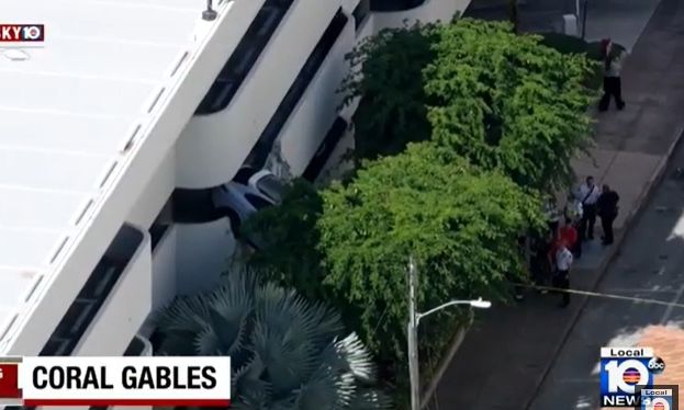 Πιο συγκεκριμένα, πρόκειται για μια λευκή Porsche που κατέληξε να κρέμεται από τον τρίτο όροφο ενός γκαράζ στη Φλόριντα. Όλα ξεκίνησαν, σύμφωνα με αμερικανικά ΜΜΕ, όταν μια γυναίκα πάτησε κατά λάθος γκάζι με αποτέλεσμα το αμάξι της να πέσει με φόρα πάνω στο τσιμεντένιο χώρισμα και να κρέμεται στο κενό του γκαράζ στο Κόραλ Γκέιμπλς της Φλόριντα.