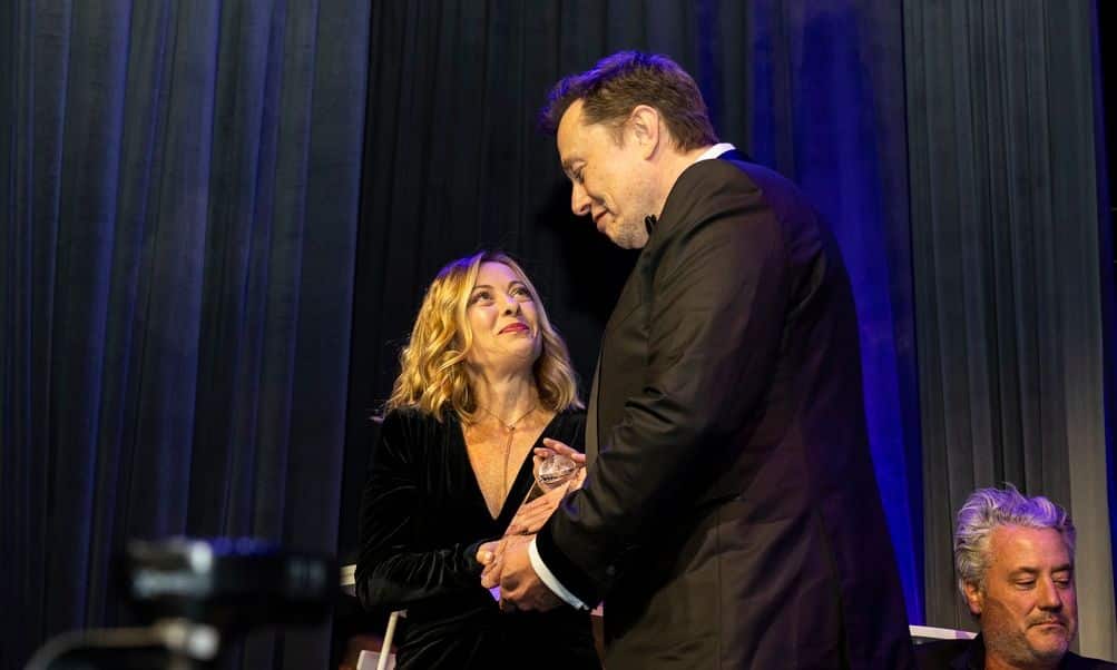 Η πρωθυπουργός της Ιταλίας αγκάλιασε τον ιδιοκτήτη του Χ και πατέρα 12 παιδιών και τον επαίνεσε ως «πολύτιμη ιδιοφυΐα» προτού εκφωνήσει μια ομιλία 15 λεπτών υπερασπιζόμενη τον εθνικισμό και αμφισβητώντας την έννοια της «αναπόφευκτης παρακμής της Δύσης». Κάθισαν ο ένας δίπλα στον άλλο στην εκδήλωση και εθεάθησαν να έχει μια βαθιά συζήτηση.