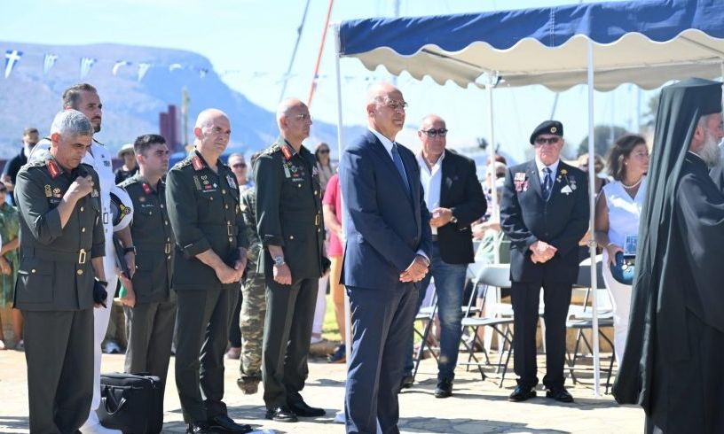 Η Ελληνική Πολιτεία δεν είναι σήμερα εδώ όμως μόνο για να αποτίσει τον δέοντα φόρο τιμής. Είναι και για να υποδηλώσει ότι οι Ένοπλές Δυνάμεις παραμένουν αρωγός στη κοινωνία της Λέρου και στους κατοίκους των Δωδεκανήσων και εν ειρήνη. Σε όλες τις δυσχερείς καταστάσεις που ίσως κληθούν να αντιμετωπίσουν. Είναι καθήκον των Ελληνικών Ενόπλων Δυνάμεων και μεγάλη τους προτεραιότητα να στηρίζουν τις κοινωνίες στις ακριτικές μας περιοχές.