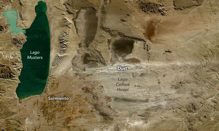 Στα άνυδρα οροπέδια της νότιας-κεντρικής Αργεντινής, σύννεφα σκόνης αναδύονται από τα ανατολικά, από τα απομεινάρια αυτού που κάποτε ήταν λίμνη στο μέγεθος της Νέας Υόρκης.