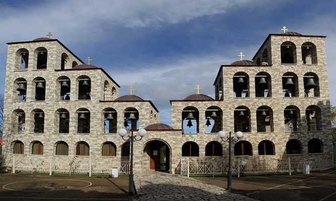 Οι μοναχοί έχτισαν εδώ το μεγαλύτερο καμπαναριό παγκοσμίως με 400 σήμαντρα και 62 καμπάνες, εις ανάμνησιν του καμπαναριού της Αγια-Σοφιάς στην Κωνσταντινούπολη, σύμβολο της δόξας του Βυζαντίου:
