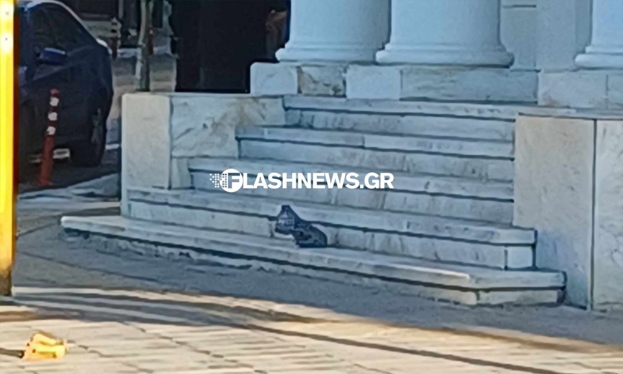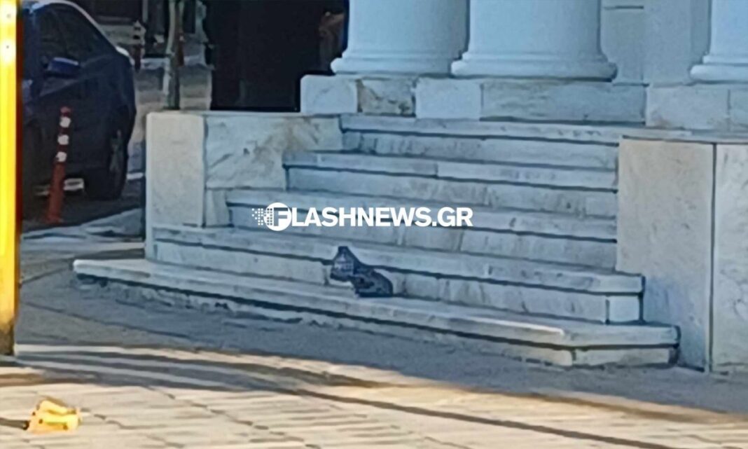 Σύμφωνα με πληροφορίες του flashnews.gr, άγνωστος εθεάθη να πετά μπροστά στα σκαλιά του κτηρίου, μια γκρι δεμένη τσάντα και στη συνέχεια να φεύγει τρέχοντας.