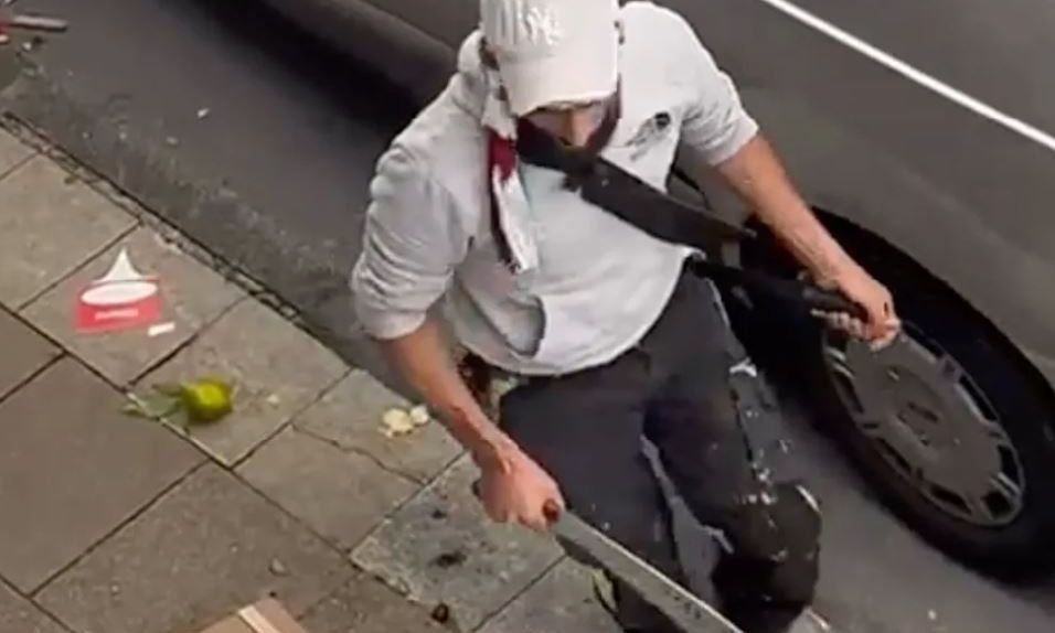 Ο οδηγός στη συνέχεια κατευθύνθηκε προς ένα άλλο κατάστημα στην Katernberger Strasse. Αυτή τη φορά βγήκε έξω και έβγαλε μια μαχαίρα. Στα κοινωνικά δίκτυα κυκλοφορούν βίντεο που δείχνουν τον δράστη να απειλεί με το όπλο ανθρώπους στη γειτονιά του. Οι περαστικοί φαίνεται ότι τον κράτησαν σε απόσταση πετώντας του αντικείμενα.