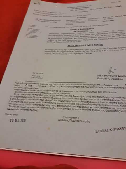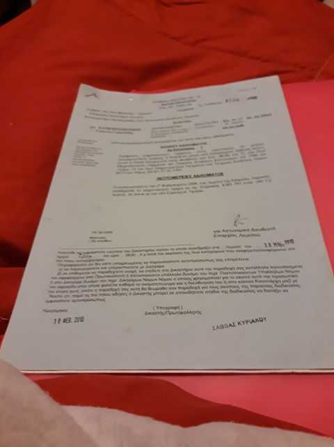 Τα έγγραφα που έχει παραδώσει ο Γιώργος στο Δήμο παρακαλώντας για μια θέση πάρκινγκ στην οδό Γρίβα στη Λεμεσό, εισπράττοντας την πλήρη αδιαφορία: