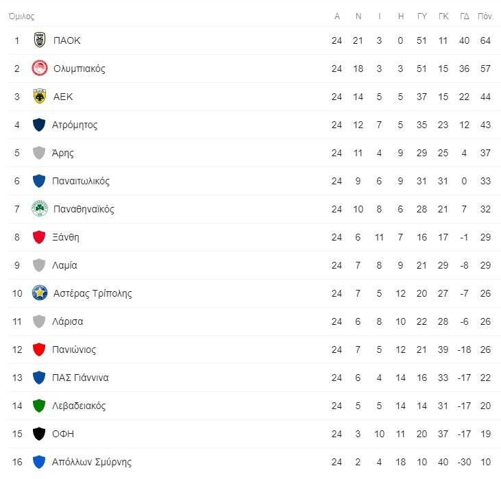 Με τη νίκη του Παναιτωλικού επί του Πανιωνίου συμπληρώθηκε η βαθμολογία της Superleague, μετά και την 24η αγωνιστική, η οποία και έχει βάλει «φωτιά» στη διεκδίκηση της παραμονής στην κατηγορία.