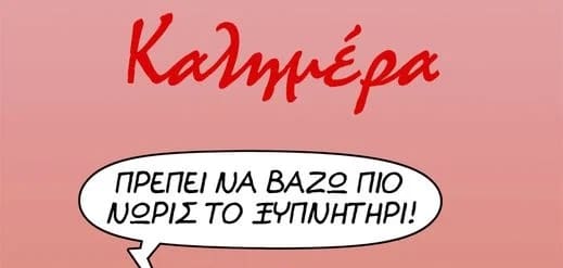 Το σκίτσο αναδεικνύει τη δυσκολία πολλών να σηκωθούν από το κρεβάτι ακόμα και όταν έχουν προνοήσει να ξυπνήσουν νωρίς, καθώς η κούραση της εβδομάδας αρχίζει να γίνεται αισθητή. Η ημέρα, αν και φωτεινή, δείχνει πως δεν είναι έτοιμη για προκλήσεις, και η εικόνα αυτή είναι μια ευφάνταστη αναπαράσταση της καθημερινότητας που ζουν πολλοί από εμάς.